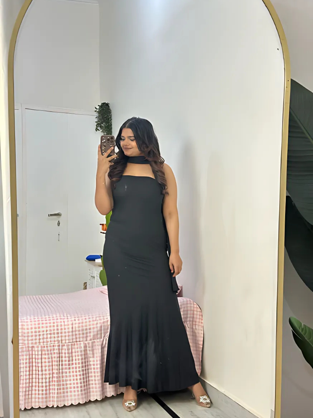 Whether you’re heading to a party, a wedding, or a night out with friends, this dress is all about effortless elegance. The scarf can be styled in multiple ways, so you can change up your vibe and make it truly your own.