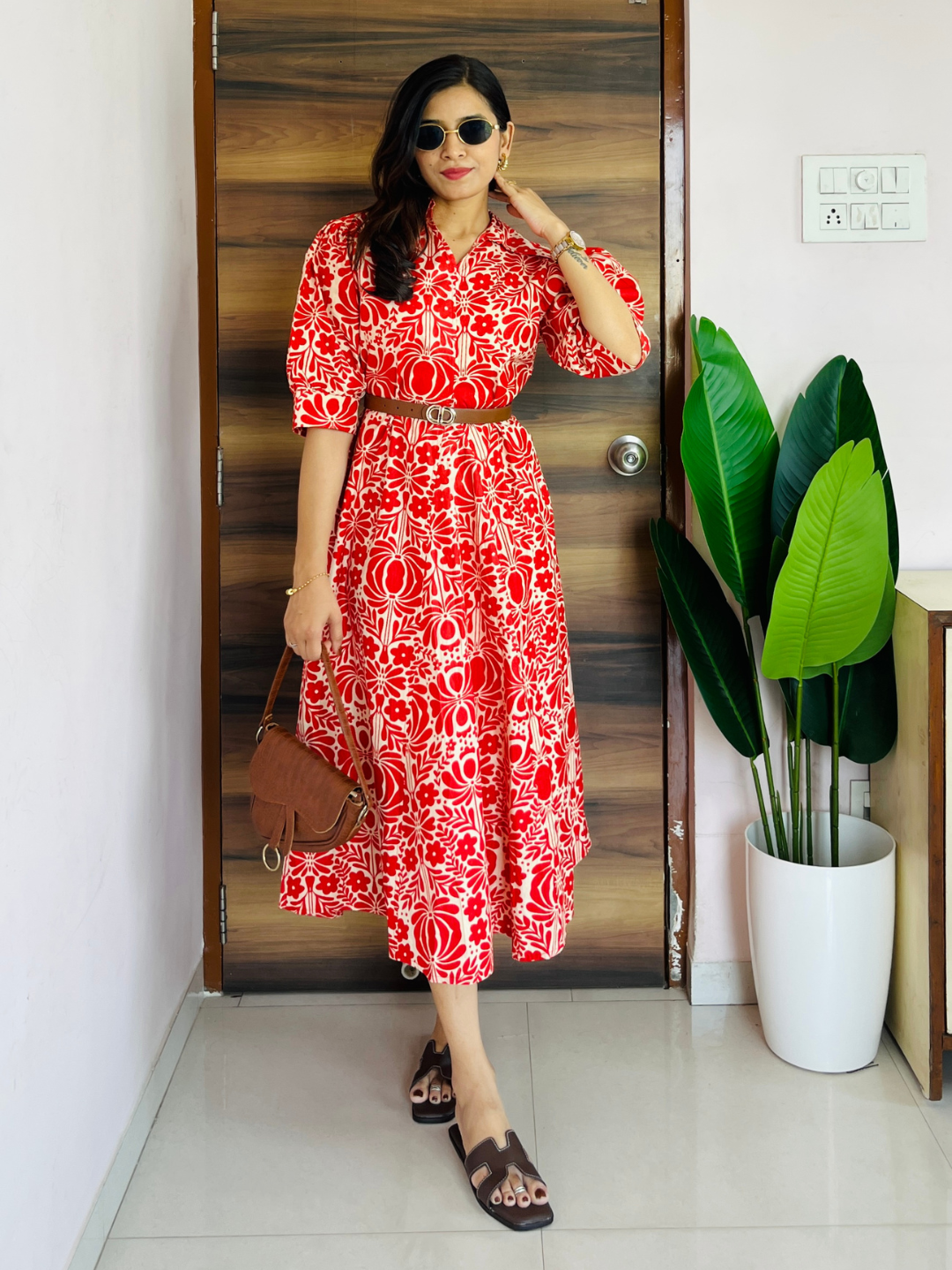 This easy breezy dress comes with pleats along the frontline which gives this dress an A-Line look, making it super comfortable to carry. It is a must have for your vacations, lunch, or a day out running errands. The comfortable silhouette is flattering yet convenient. Made from smooth, wrinkle resistant fabric. Its quick drying fabric helps avoid sweat patches. The premium cotton fabric used to craft this dress ensures easy breathability and comfort.