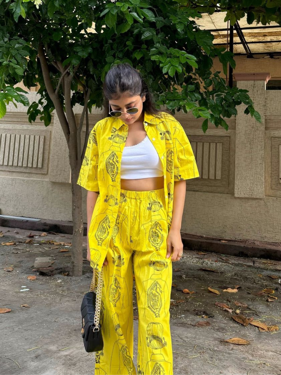 This Printed Two Piece Cotton Coord Set offer a stylish and coordinated look with a comfortable feel. Made from soft cotton fabric, this ensemble typically includes a printed top and bottom, often featuring matching patterns or complementary designs. Perfect for casual outings or lounging at home, this set provides effortless style and versatility. The premium fabric is wrinkle-free, colour bleeding resistant and machine washable thereby making it long lasting and easy to maintain.