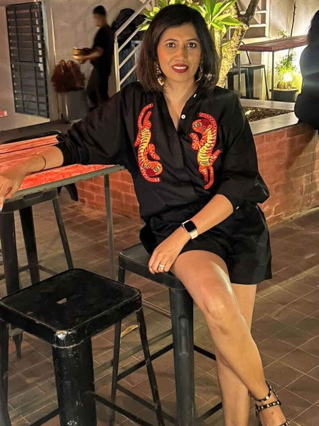 Level up your everyday looks with the Two Piece Shorts and Sequinned Shirt Set! The set features  shorts and an open collared shirt with buttons. The shorts have a super soft all around elastic for the perfect fit. Each patch on the shirt is hand embroidered, and crafted through intricate sequin and bead work. This set is the complete package, and will make you look like a complete package, on your travels, at the airport, at the movies, or for a fun lunch!  The premium fabric is wrinkle-free and colour bleeding resistant and machine washable thereby making it long lasting and easy to maintain.