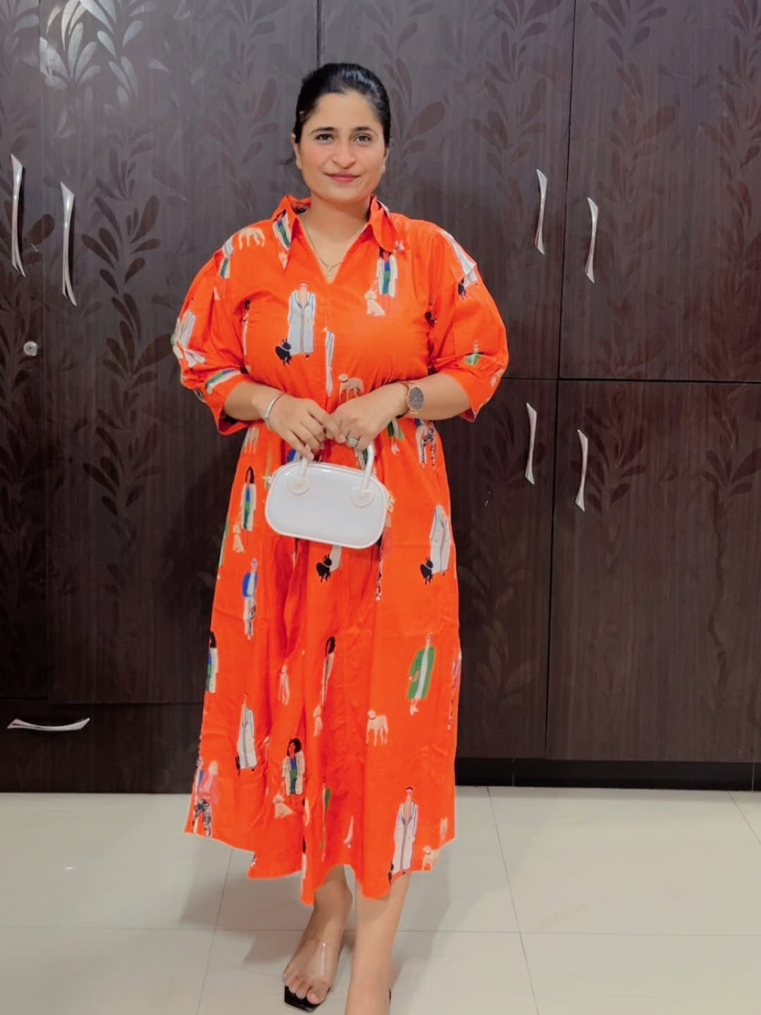This easy breezy dress comes with pleats along the frontline which gives this dress an A-Line look, making it super comfortable to carry. It is a must have for your vacations, lunch, or a day out running errands. The comfortable silhouette is flattering yet convenient. Made from smooth, wrinkle resistant fabric. Its quick drying fabric helps avoid sweat patches. The premium cotton fabric used to craft this dress ensures easy breathability and comfort.