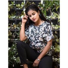 Printed half sleeves top. It can work with jeans or high waist pants or palazzos. Length of the top is regular length and not cropped. Comfortable fit that can be worn from day to night and looks very stylish. It is a great versatile top to wear to college, lounge around at home or wear to a party. Wrinkle free fabric makes it travel friendly. Its quick drying fabric helps avoid sweat patches. The premium fabric is color bleeding resistant thereby making it long lasting.