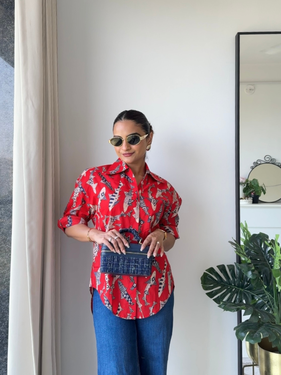 This Printed Asymmetrical Cotton Shirt is a versatile wardrobe must have! Wear it on top of a plain shorts, or your favourite blue jeans, or with well tailored pants for a polished look! The asymmetrical cut is a stylish addition that elevates this shirt.