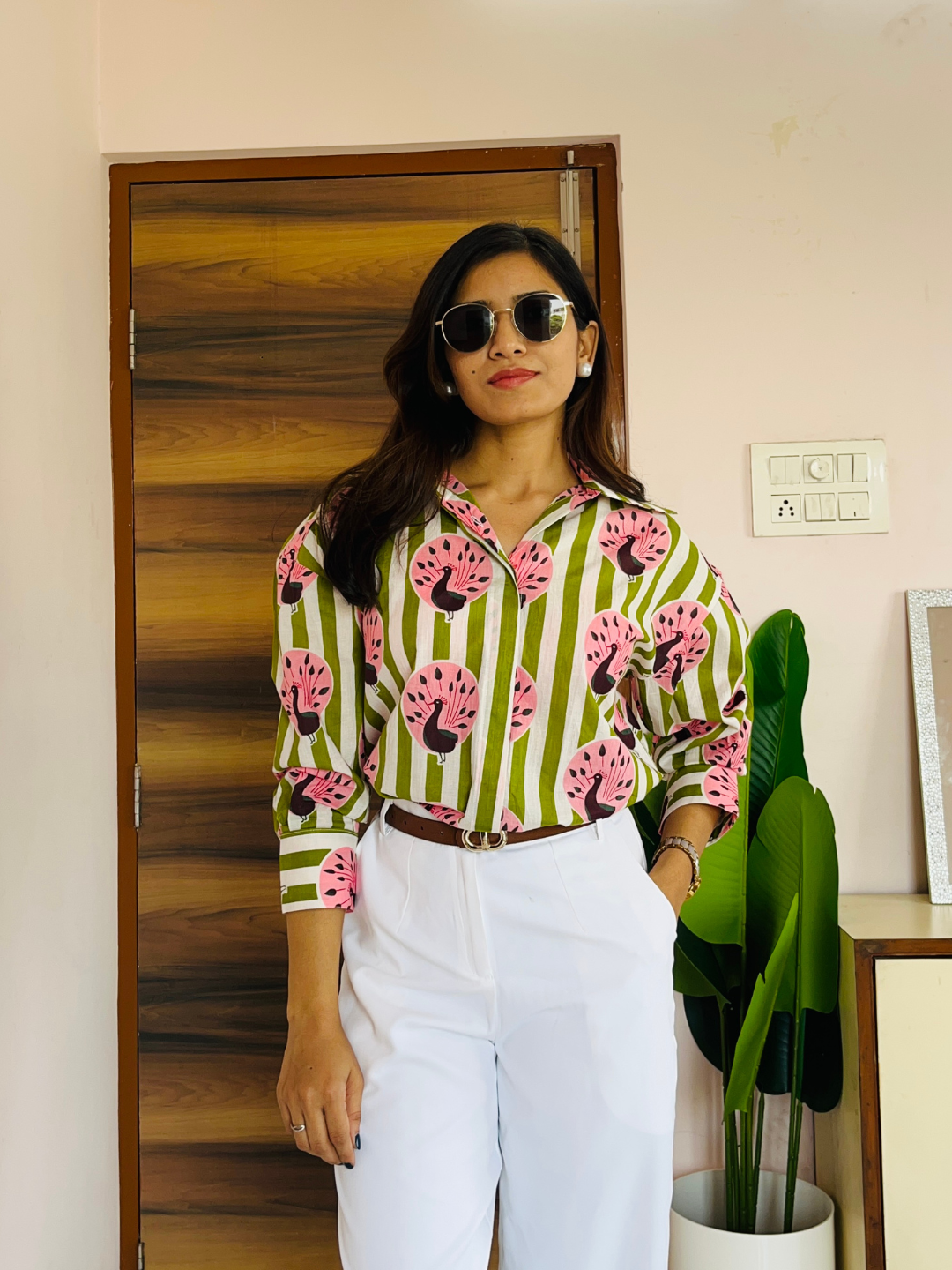 This Printed Asymmetrical Cotton Shirt is a versatile wardrobe must have! Wear it on top of a plain shorts, or your favourite blue jeans, or with well tailored pants for a polished look! The asymmetrical cut is a stylish addition that elevates this shirt.