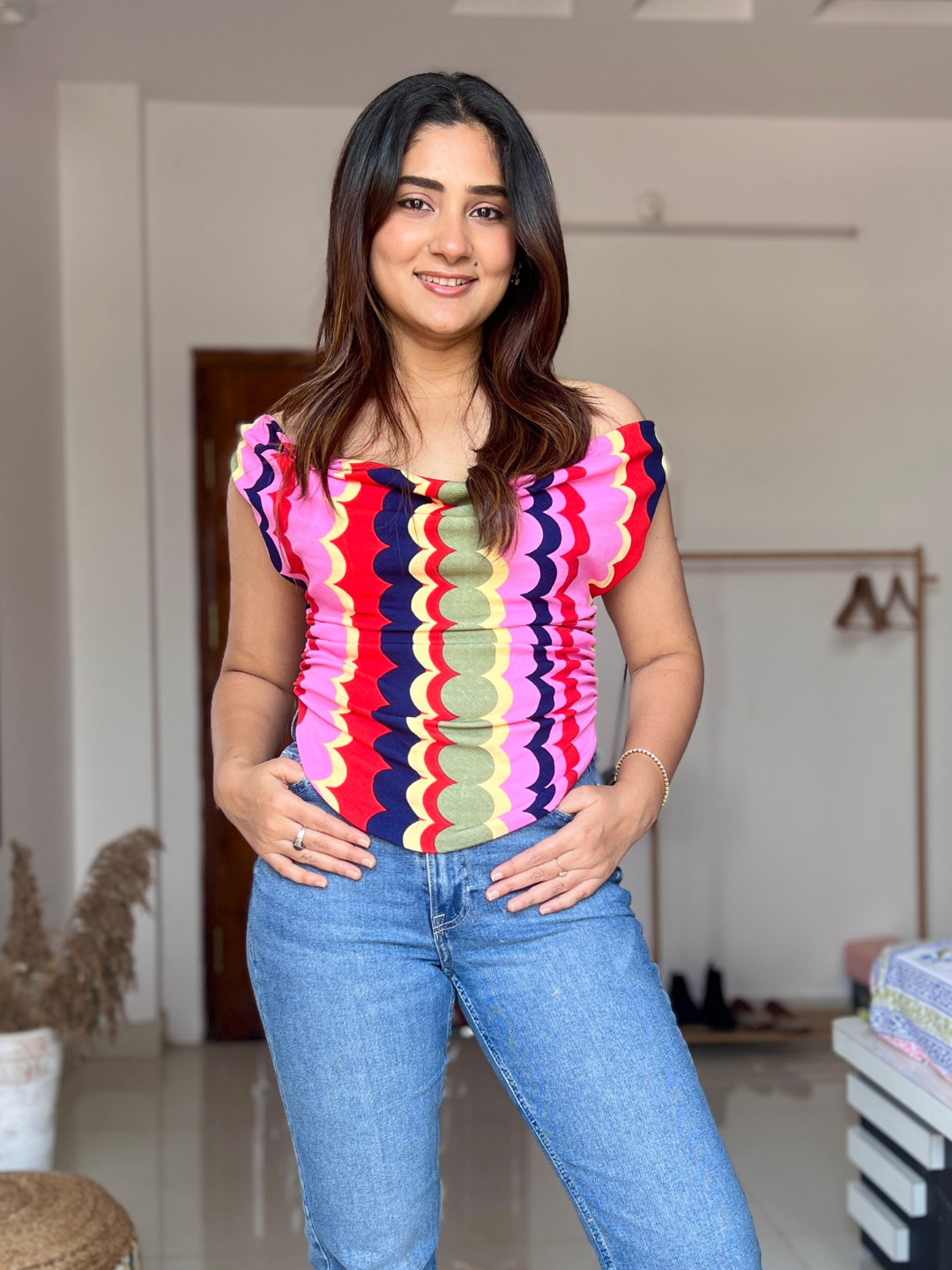 Printed Cotton Stretchable Draped Crop Top - Uptownie