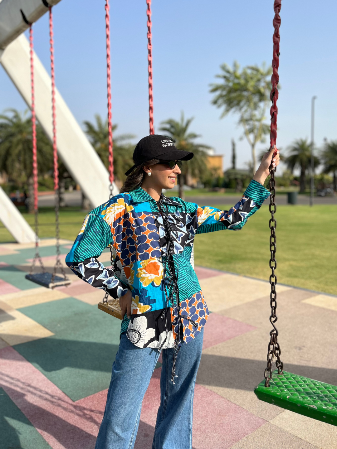 This Printed Tie-Up Cotton Shirt is a versatile wardrobe must have! Wear it on top of a plain shorts, or your favourite blue jeans, or with well tailored pants for a polished look! The black tie ups with white topstitching elevate this shirt, making it the perfect brunch look.