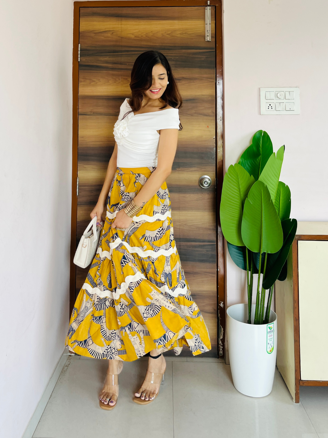 Elevate your wardrobe with our Ric-Rac Tiered Maxi Skirt, a perfect blend of comfort and style. This stunning skirt features a playful patterns, bringing a touch of classic charm to your ensemble. The tiered design adds a flirty flair, allowing for effortless movement and a beautiful silhouette. Crafted from lightweight, breathable fabric, it’s ideal for warm days and cool evenings alike. Pair it with a simple tee or a chic blouse for a versatile look, whether you’re heading to brunch or enjoying a leisurely stroll. Embrace timeless elegance with a modern twist in this must-have maxi skirt!