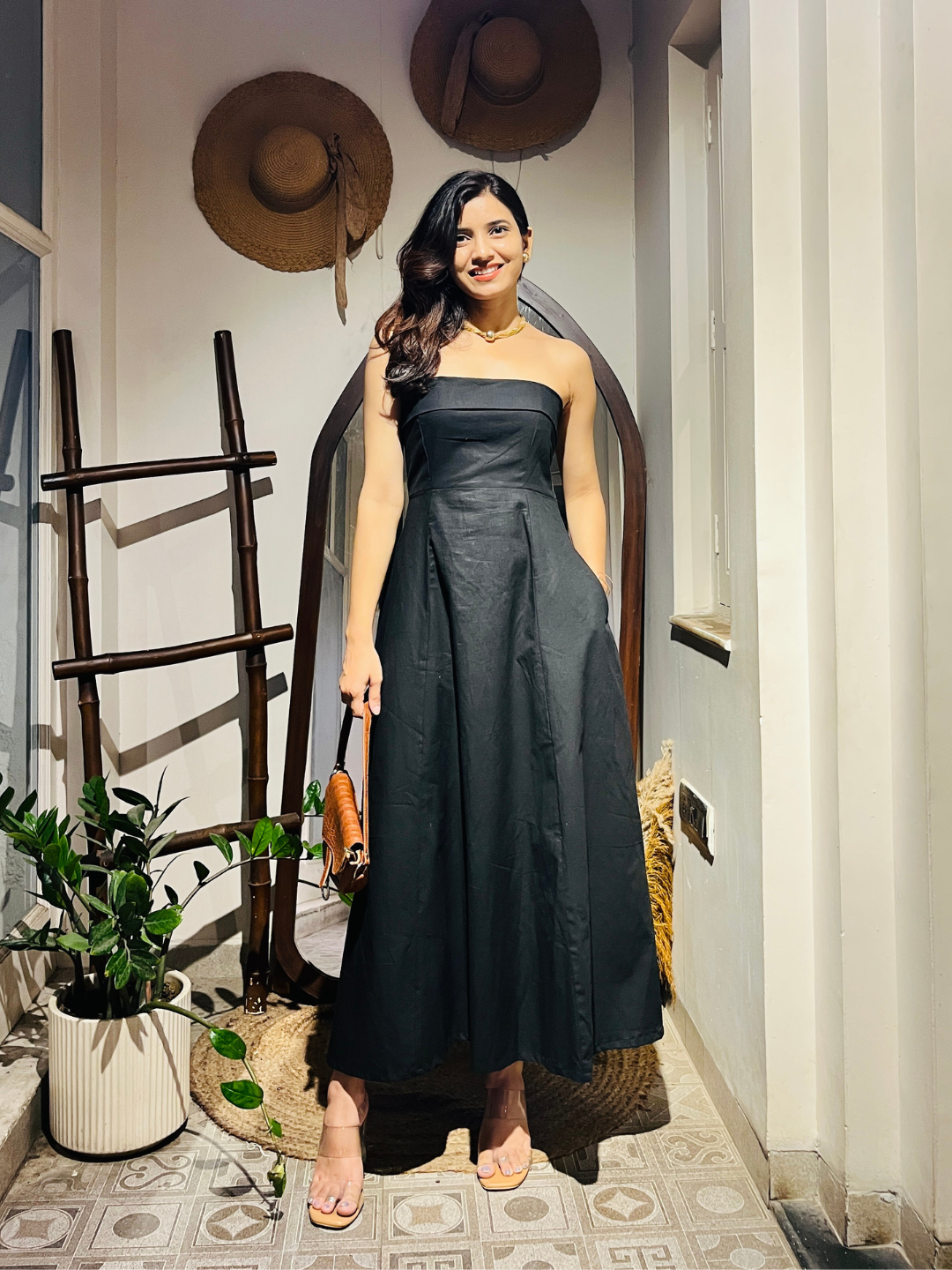 Stay cool, comfy, and effortlessly chic with this Bandeau Maxi Cotton Dress. Crafted from soft, breathable cotton, this dress is perfect for warmer days, keeping you cool without compromising on style. The bandeau neckline adds a trendy, strap-free look that’s all about showing off your shoulders and sun-kissed skin. The maxi length offers flowy elegance, while the loose fit keeps things relaxed and easy-breezy. Whether you're heading to a beach day, a garden party, or just lounging in style, this dress is your new go-to. Pair it with sandals, sneakers, or your favorite accessories for an effortless yet stunning look!!