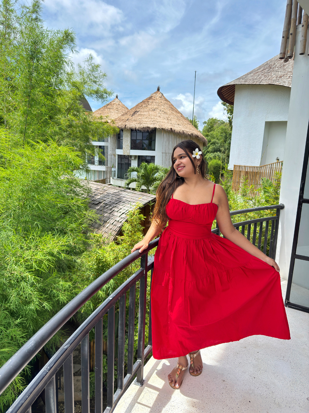 The Corset Style Midi Dress dress is made from soft cotton fabric. Wearing it with straps or going off the shoulder, the flattering neckline, narrow pleats on the bust, and corset style fit gives this dress the perfect soft-girl feminine vibe! The layered cut on the bottom half of the dress adds some drama to this fit. It's the perfect vacation outfit - wear it with white sneakers or your favourite flats for a look that will make heads turn. It's also perfect for a party - put on a pair of nude heels and you're all set! You'll be so comfortable and so pretty in this dress, you'll never want to take it off! This dress is machine washable, and wrinkle resistant, making it the perfect vacay fit. The colour will not fade no matter how many times you wash it, so enjoy with ease.