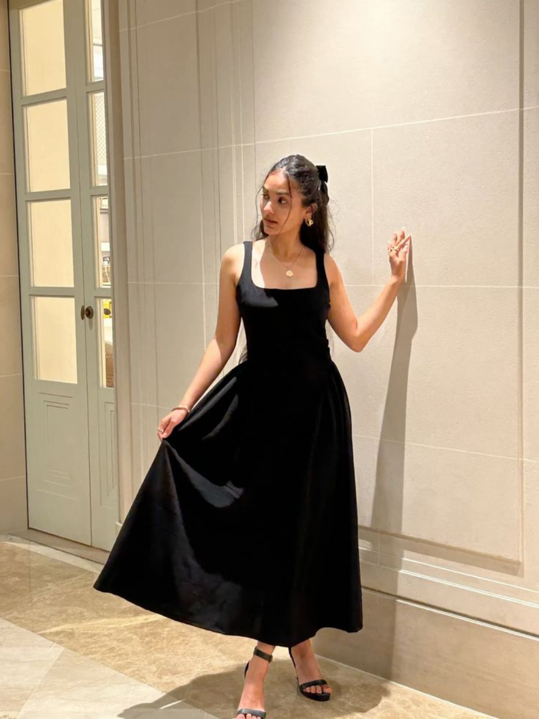 The Corset Fit & Flare Midi Dress blends structured elegance with feminine charm. Featuring a corset-inspired bodice that accentuates the waist, it flows effortlessly into a flared midi-length skirt for a flattering silhouette. The fitted top offers a touch of structure, while the flared bottom adds graceful movement, making it perfect for both day and evening occasions. Pair it with strappy heels and statement earrings for a refined evening look, or dress it down with flats and a light jacket for chic daytime styling.