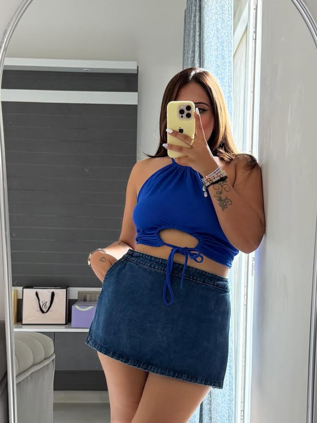 This halter neck ribbed top is straight-up iconic. It’s got that effortlessly hot vibe with a bold keyhole cutout, strappy back and flirty front tie-up detailing that lets you adjust the fit just right. The open back with strappy ties is a total statement moment, perfect for keeping things breezy but bold. The soft ribbed fabric hugs you in all the right places while still keeping it comfy.