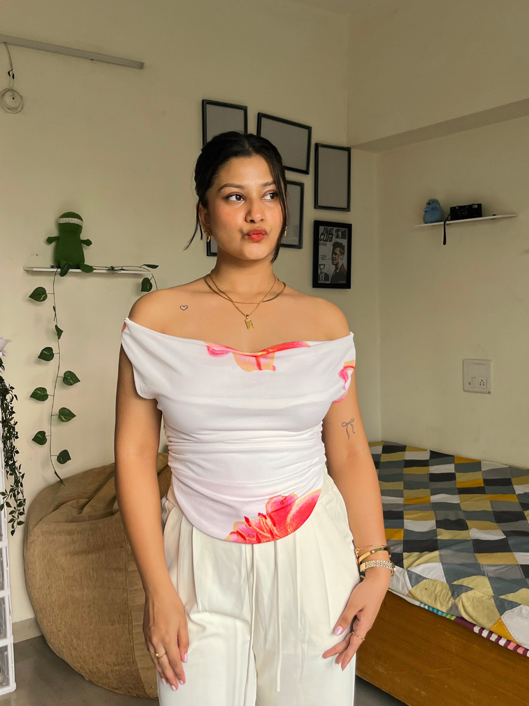 Printed Cotton Stretchable Draped Crop Top - Uptownie
