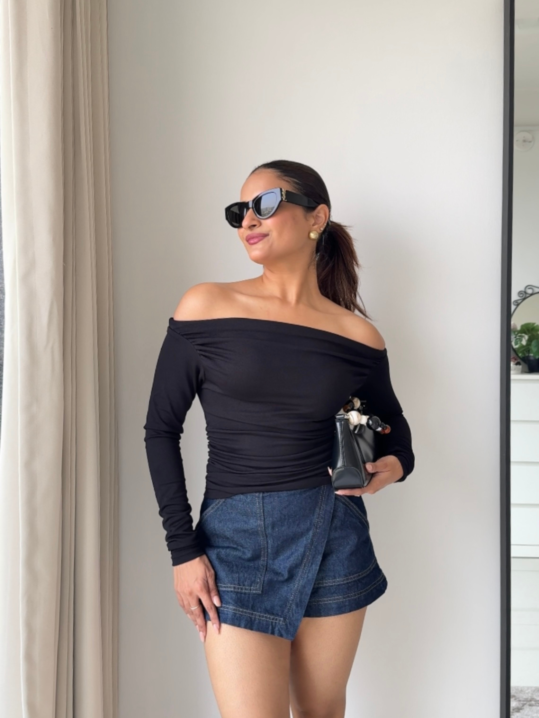 This Asymmetrical neck full sleeve top is made with super soft and stretchable cotton fabric. Featuring a seamless design, this top provides a smooth, sleek silhouette. It is perfect for all-day wear, whether you're dressing up for a special occasion or just a casual outing. Its versatile style makes it easy to pair with your favorite high-waisted pants or skirt for a trendy look. Order yours today and elevate your wardrobe with this chic and trendy top.