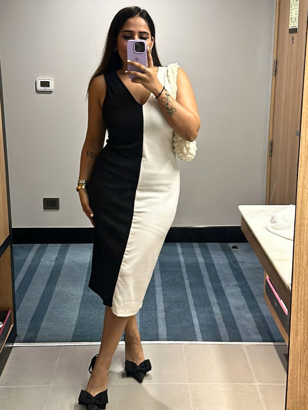 Stretchable Ribbed Dual Tone Bodycon Dress