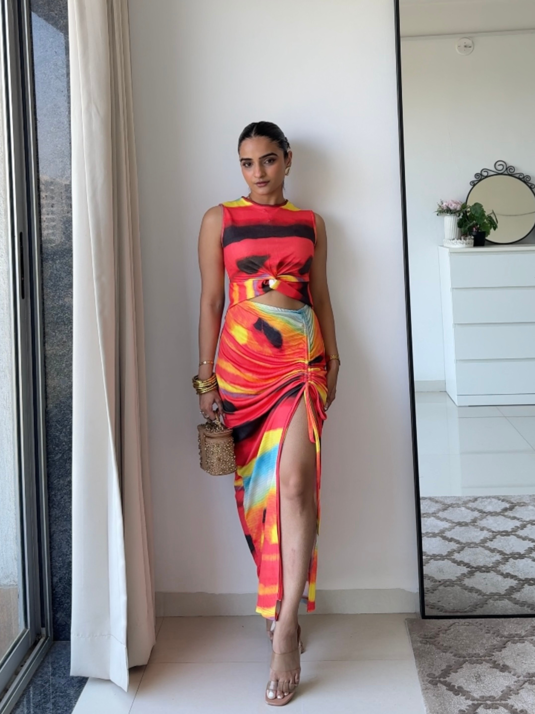 Stretchable Knotted Cutout Ruched Midi Dress