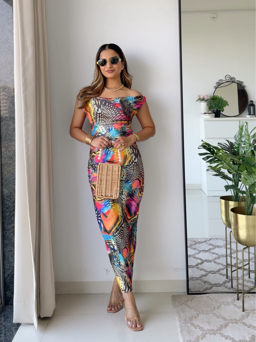 Stretchable Off-Shoulder Drape Dress - Uptownie