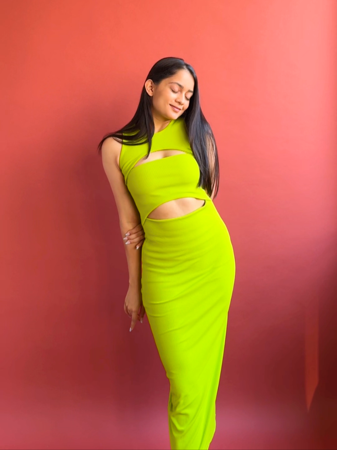 The Stretchable Ribbed Boydcon Bandage dress is made from soft stretchable ribbed fabric. The silhouette of the dress flatters every curve, and the cut-outs are a fun and risky addition, adding oomph to this dress.  The fabric ensures that no underwear lines will show in this dress, making it easy to wear. The dress features two cut-outs in the front, and one in the back - making this a perfect dress for a party. Move over LBD, the MBD(Midi Black Dress) is what it's all about!