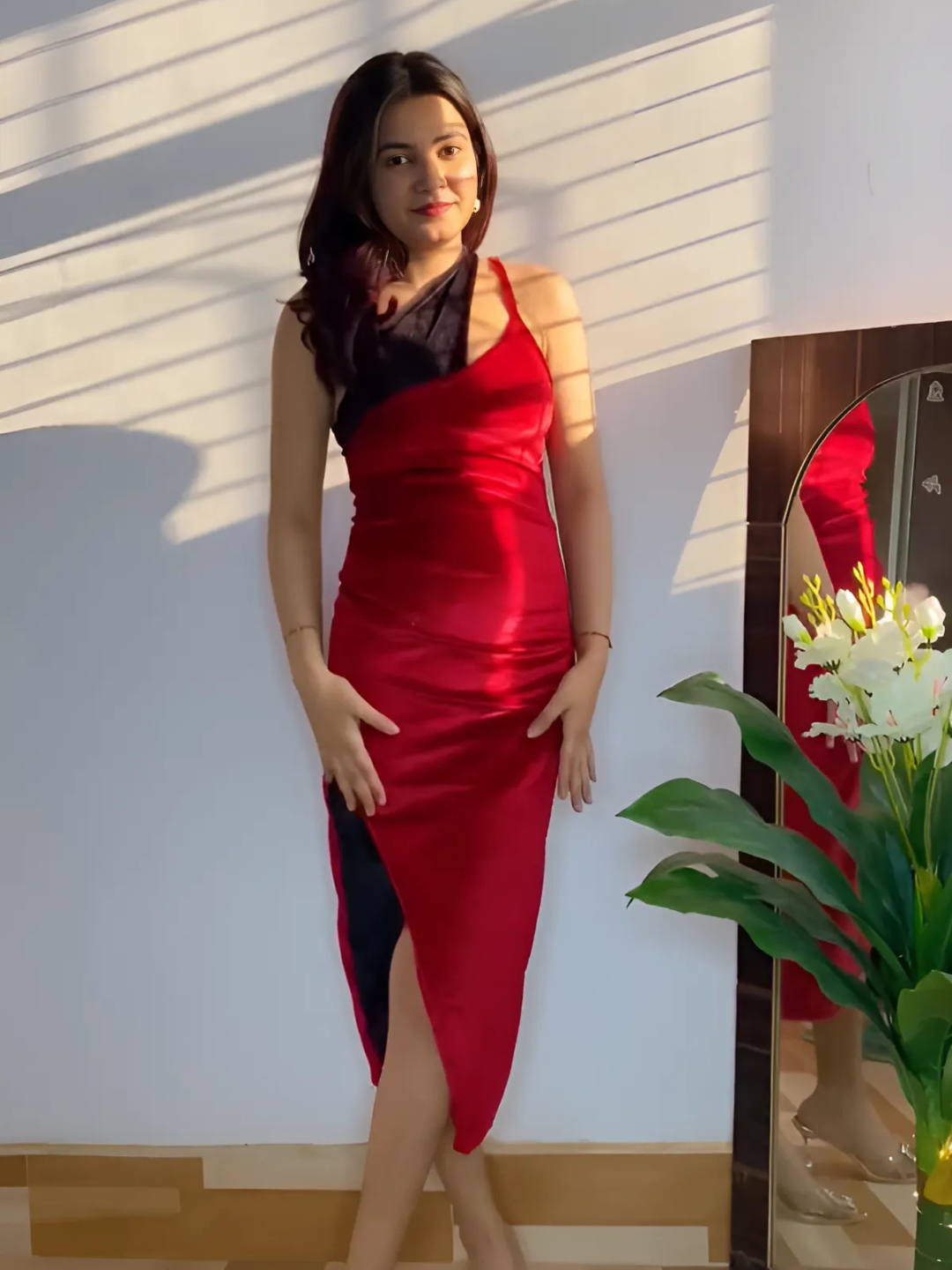 The Stretchable Velvet Bodycon dual-color dress is made from soft stretchable velvet fabric. The silhouette of the dress flatters every curve, and the cut-outs are a fun and risky addition, adding oomph to this dress while the rich velvet used in the dress adds a royal touch to the whole outfit. The fabric ensures that no underwear lines will show in this dress, making it easy to wear. The dress features shoulder cut-out detailing- making this a perfect dress for a party. Team it up with statement accessories and heels to turn heads throughout your evening!!