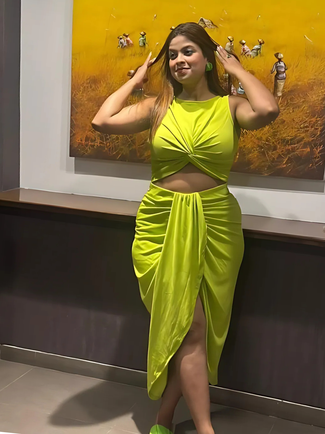 Stretchable Twisted Front Cut Out Dress
