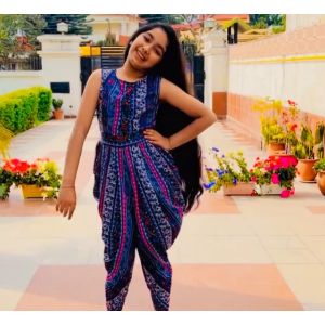 Relaxed fit ankle length dhoti jumpsuit perfect for festive events. The elasticated soft waistband is super comfortable for kids and they can wear this outfit hassle free. The beautiful pleat detailing in the jumpsuit will definitely make you stand out! Made from soft, wrinkle resistant crepe fabric, this jumpsuit is sure to look trendy. It is color bleeding resistant, thereby making it long lasting.
