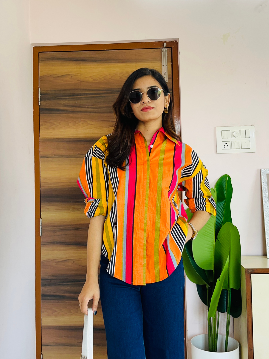 This Printed Asymmetrical Cotton Shirt is a versatile wardrobe must have! Wear it on top of a plain shorts, or your favourite blue jeans, or with well tailored pants for a polished look! The asymmetrical cut is a stylish addition that elevates this shirt.