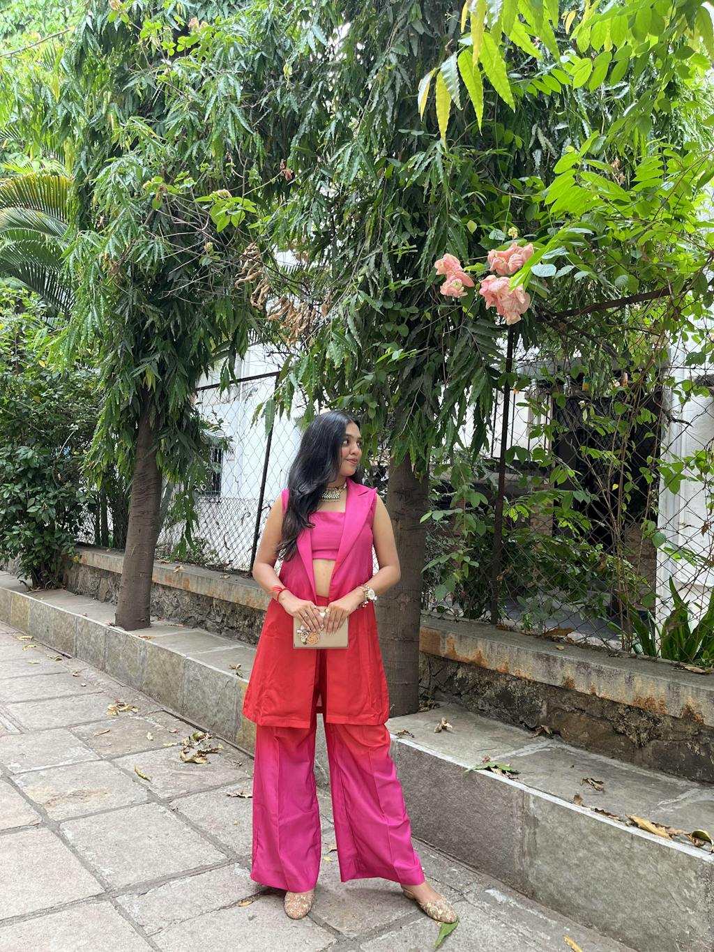Make a statement in this Three Piece Co-ord Set. Each piece is made from 100% linen making it perfect and super breathable for Indian weather. The full length trousers feature a wide waistband for a super comfortable fit. The waistband is smooth in the front and elasticated in the back for maximum comfort. The inner bralette comes with pads so go bra free with ease! The jacket adds an elevated look. This set is super versatile - wear it with or without the jacket or change the bralette inside for a whole new look.